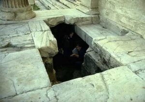 Εκεί υπάρχει μια αρχαία στενή κλίμακα από μάρμαρο, η φορά της οποίας οδηγεί σαφώς κάτω από τον Παρθενώνα.