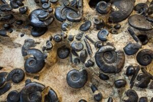 Ήταν τότε που εύρισκε στο έδαφος και στους βράχους της γης του Λυγουριού, τα διάσπαρτα “πέτρινα σαλιγκάρια“, τους κάθε είδους, μορφής και μεγέθους Αμμωνίτες.