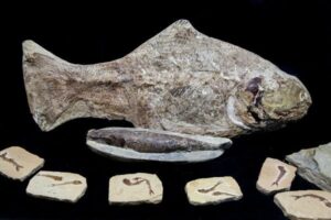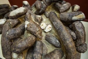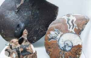 Στις διπλανές προθήκες φιλοξενούνται “Καθοδηγητικά Απολιθώματα“, δηλαδή απολιθώματα οργανισμών, που έζησαν μικρό χρονικό διάστημα μέσα στον γεωλογικό χρόνο αλλά παρουσίασαν μεγάλη γεωλογική εξάπλωση. Έτσι μας βοηθούν να προσδιορίσουμε με σχετική ακρίβεια την ηλικία των στρωμάτων μέσα στα οποία έχουν βρεθεί.