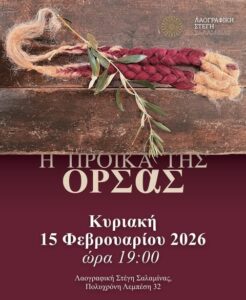 ΣΗΜΕΡΑ : Λαογραφική Στέγη Σαλαμίνας ΄΄Η ΠΡΟΙΚΑ ΤΗΣ ΟΡΣΑΣ ΄΄