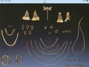 Τα κοσμήματα αυτά μοιάζουν με τον περίφημο «θησαυρό του Πριάμου» που αποκάλυψε ο Ερρίκος Σλήμαν στην Τροία, καθώς και τα χρυσά απ´τους βασιλικούς τάφους στην Ούρ της Μεσοποταμίας (αρχαιολόγος Αγγελική Κώττη).