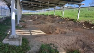 Το πλάτος τους φτάνει από 1,30 ως 1,84 μ. και το μέγιστο βάθος τους ως 1,85 μ. Εντοπίστηκαν επίσης λιθόστρωτα, δάπεδα σπιτιών, κατασκευές (ανοιχτές εστίες και θολωτός φούρνος) καθώς και λάκκοι των αρχών της Νεότερης Νεολιθικής Εποχής.