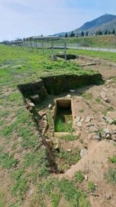 Στην ίδια περιοχή, λίγο βορειότερα, αποκαλύφτηκαν τέσσερις τάφοι και λείψανα οικιών μυκηναϊκής εποχής και τμήμα δρόμου και ένας τάφος νεολιθικής εποχής.