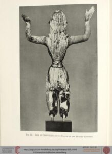 Πρόκειται για μια ολόσωμη μισόγυμνη γυναικεία μορφή με ύψος (19,1 εκατοστά), πλάτος (12,5 εκ.), και βάθος (3,9 εκ.), από αποξηραμένο ελεφαντόδοντο με χρυσοποίκιλτα κοσμήματα, και ανυψωμένους βραχίονες σε στάση δέησης.