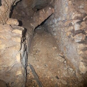 Η λαξευμένη συον ασβεστολικο βραχο σηραγγα μήκους 400μ, εντοπίζεται σε βάθος 20μ απο την επιφάνεια του εδάφους.