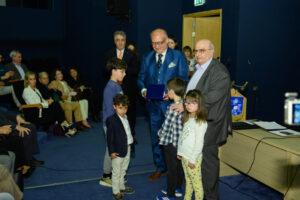 Η πιο συγκλονιστική στιγμή της βραδιάς ήρθε όταν ο Πρύτανης του Πανεπιστημίου Πατρών καθηγητής Χρήστος Ι. Μπούρας μαζί με τους λιλιπούτειους ασθενείς, παιδιά στα οποία ο Αυξέντιος Καλαγκός χάρισε κυριολεκτικά μια δεύτερη ζωή, του απένειμαν τιμητική πλακέτα.